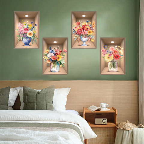 नई रचनात्मक कला pvc सिरेमिक vases भोजन के लिए कमरे के सजावट 3 डी विनाइल हरे पौधों के फूल सजावट दीवार स्टिकर