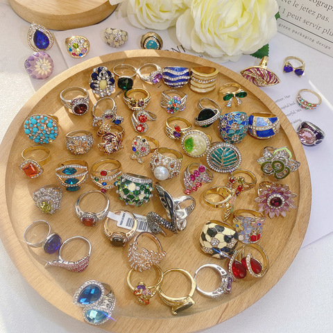 महिलाओं के लिए नया जिरकॉन फैशन थोक गहने सामान बहुत मिक्स गुलाब की छल्ले लड़की 18k गोल्ड प्लेटेड रिंग